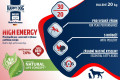 Pre veľmi aktívnych psov. Vynikajúce prémiové granuly pre dospelých psov s enormne zvýšenou potrebou energie a proteínov. Toto plnohodnotné základné kompletné krmivo s vysokým obsahom tuku a proteínov je optimálnou potravou najmä pre pracovné alebo športové psy na pokrytie ich vysokých nárokov v období enormnej fyzickej alebo psychickej záťaže.